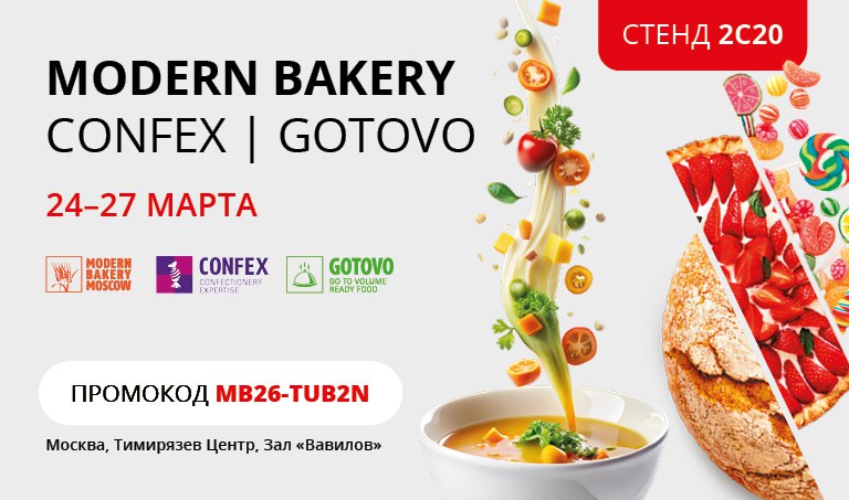 Уважаемые партнеры! Приглашаем Вас посетить наш стенд 2C20 (зал Вавилов) на выставке Modern Bakery | CONFEX | GOTOVO 2026.