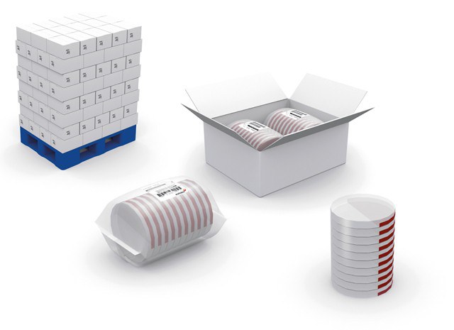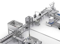 Две упаковочные линии флоу-пак формируют из чашек Петри вертикальные пачки, которые поворачиваются перед упаковкой в трехшовный пакет типа «подушка».