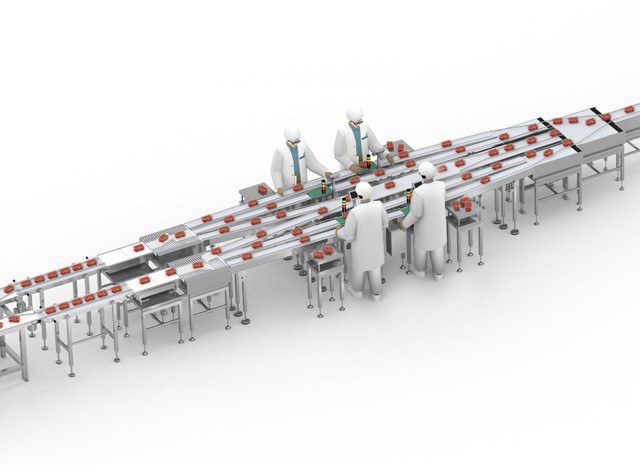 В зоне контроля взвешивания каждый лоток взвешивается отдельно, чтобы распределить их в соответствии с весом.