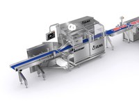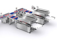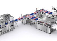 Система переноса под углом 90 ° соединяет упаковки в буферной ленте вакуумной камеры, так что можно использовать оба уплотнительных стержня. Если продукты недостаточно малы для сопряжения, система автоопределения загрузит продукт как единый предмет.