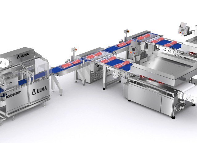 Запатентованная ULMA Packaging система двойной автоматизированной передачи позволяет получать из упаковочной машины пакеты, которые попеременно открываются спереди и сзади, что позволяет автоматизировать загрузку упаковок в ремень вакуумной камеры с двойным уплотнительным стержнем, используя систему перемещения 90º.