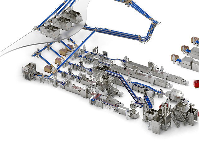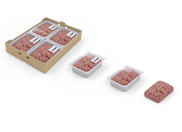 Комплексное решение для автоматизации упаковки включает в себя восемь упаковочных линий для различных мясных продуктов. Крупные куски упаковываются в вакуум на FLOW-VAC® и термоформующуюся упаковку, а мясные полуфабрикаты и фарш – в модифицированную атмосферу.