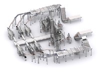 Линия оборудована для индивидуальной упаковки замороженных гамбургеров, а также последующей вертикальной упаковки в мультипак.