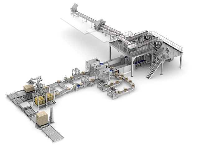 Упаковочное решение оснащено двумя линиями, состоящими из формовщиков коробов, ячейки, которая заполняет короба упаковками с разделкой птицы, и автоматического заклейщика коробов посредством клейкой ленты.
