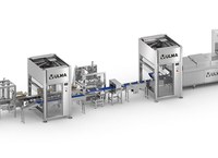 Первая фаза линии - вакуумная упаковка блоков сыра на термоформовочной машине, которая выполняет упаковку в три ряда.