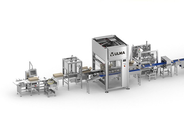 В конце автоматический заклейщик коробов запечатывает короба с упаковками, и этикетировочная машина наносит на них идентификационную информацию.