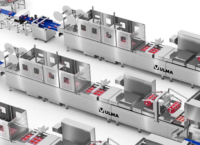 Полностью автоматизированное комплексное решение для свежего сыра, состоящее из трех упаковочных линий с термоформерами.