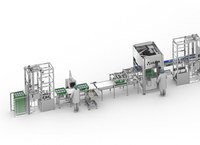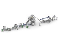 Упаковочная линия начинается с терки для сыра, далее тертый сыр направляется в специальный барабан, в котором сыр смешивается с крахмалом, чтобы предотвратить склеивание продукта в упаковке.