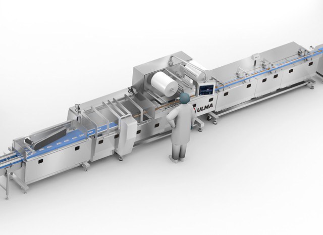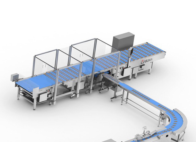 Система распределения рядов распределяет неупакованный продукт по линиям обмотки основного потока, передавая ряды продукта на упаковочные линии.