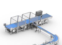 Эти группы автоматически загружаются на подающий конвейер упаковочной машины, чтобы выполнить вторичную упаковку.