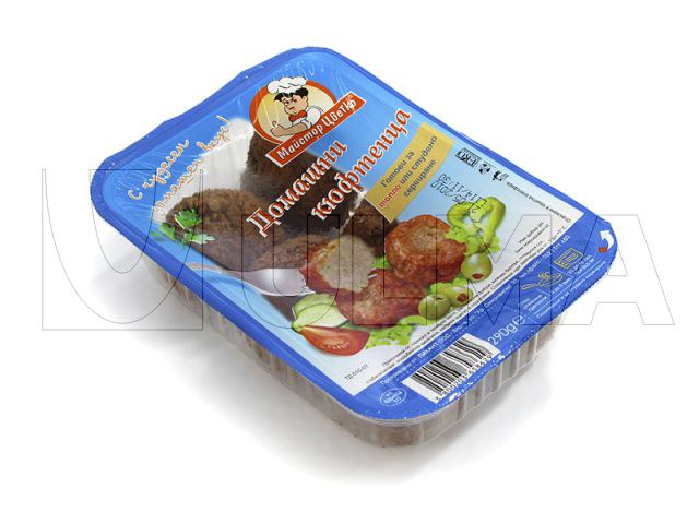 Упаковка фрикаделек в модифицированной атмосфере (МГС) в лоток на трейсилере