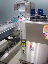 Упаковка замороженной выпечки в жёсткую плёнку на термоформере Машина производит индивидуальную упаковку по два продукта. Также она делает группы отрывных упаковок по 2/3/4 шт. для промо-акций. 399_1.jpg 399_2.jpg 399_3.jpg ‹ › Prev Next TFE 700 Термоформер для упаковки в мягкую и жесткую пленку с опциями упаковки в вакуум и в модифицированную атмосферу (МГС). Машина с максимальной производительностью.