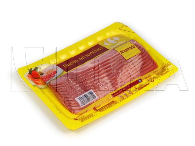 Скин-упаковка бекона в жесткую пленку на термоформере