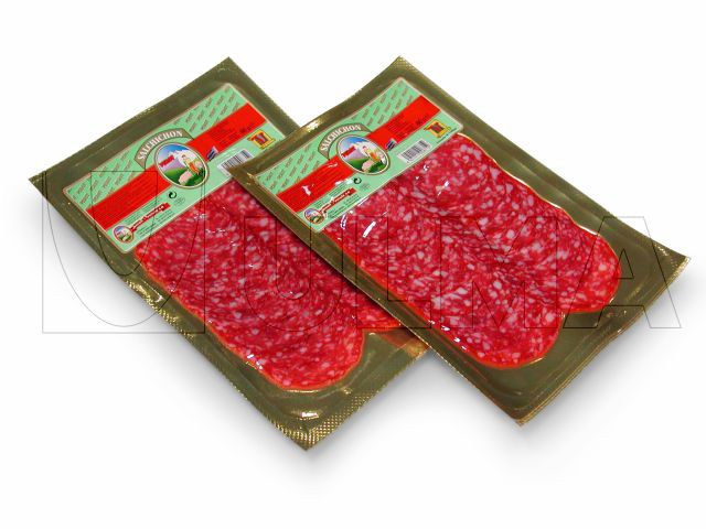 Вакуумная упаковка мясной нарезки холодного копчения в мягкую плёнку на термоформере