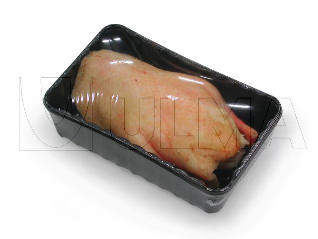Упаковка утки в модифицированную атмосферу (МГС) в лотке на флоу-паке