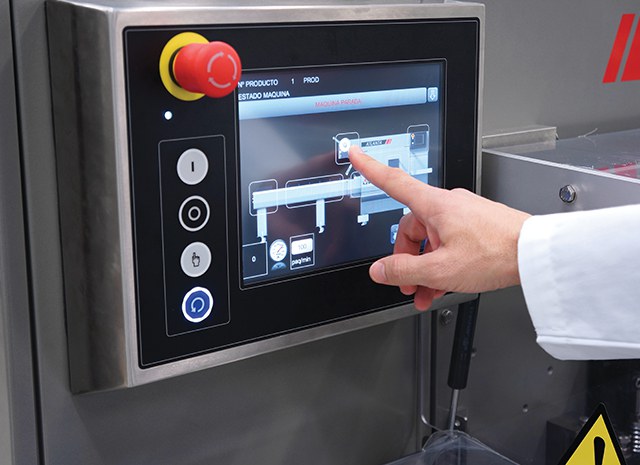 - Установка параметров работы машины (длина пакета, положение толкателей...) с помощью сенсорного дисплея панели управления.