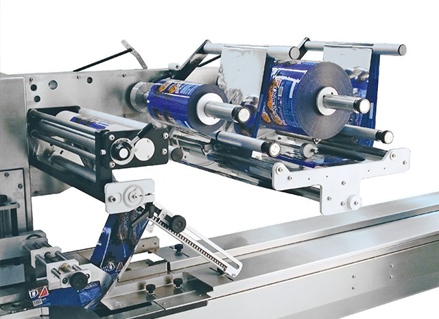 - Электронная машина с тремя независимыми сервомоторами (роторные губки, мотор размотки плёнки, подающий конвейер), которые синхронизируются многоосевым электронным контролем.