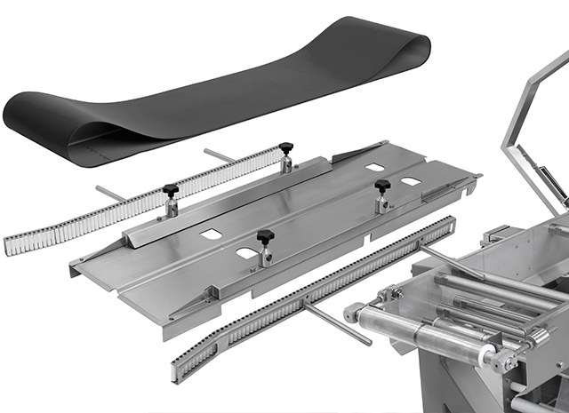 - Конструкция подающего конвейера позволяет легко отсоединить его от машины и разобрать для мойки и дезинфекции.