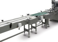 - Подающий конвейер с толкателями автоматически синхронизирует расположение продукта с положением станции поперечной сварки.
