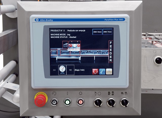 - Электронная машина, оборудованная четырьмя независимыми сервомоторами (роторные зажимы, ролики продольной сварки, подающий конвейер и моторизованный держатель рулона), синхронизированные электронной много-осевой системой контроля
