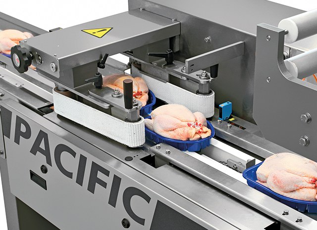 Новая система PACIFIC SSF - это линия для упаковки в термоусадочную стретч плёнку, которая производит герметичную упаковку мяса и птицы в лотках.
