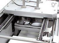 Термоформер в гигиеничном исполнении для упаковки в мягкую и в жёсткую плёнку с опциями упаковки в модифицированную атмосферу (МГС) и вакуумирования. Уровень производительности выше среднего.