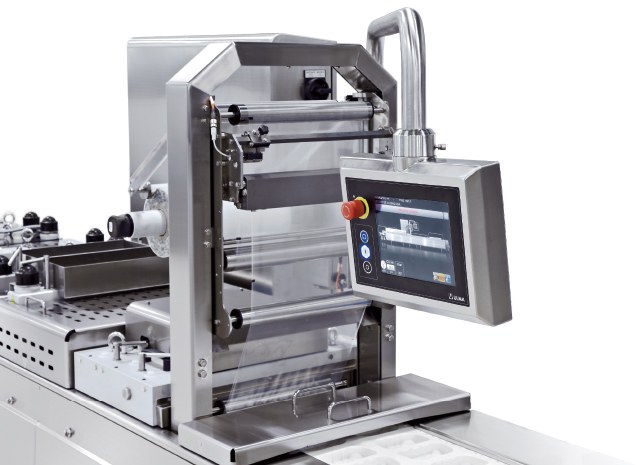 Термоформер в гигиеничном исполнении для упаковки в мягкую и в жёсткую плёнку с опциями упаковки в модифицированную атмосферу (МГС) и вакуумирования.