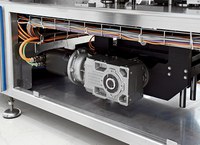 Подача и позиционирование лотков осуществляется ленточным конвейером с барабанным двигателем