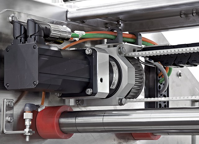 - Подача и позиционирование лотков осуществляется ленточным конвейером с барабанным двигателем